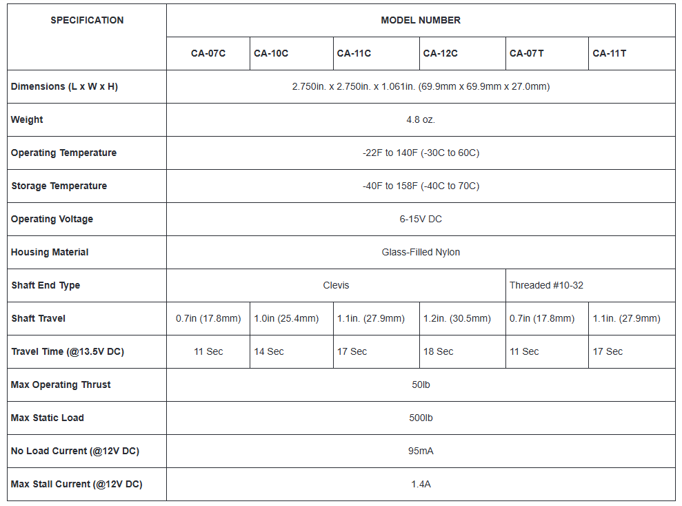CA-07T Trim Servo - 0.7 Inch Travel - Threaded End